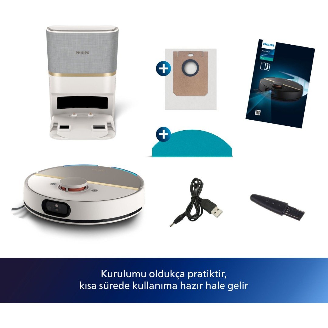 Philips 7000 Serisi Islak ve Kuru İstasyonlu Robot Süpürge, Otomatik boşaltma istasyonlu, Beyaz robot süpürge, XU7100/02