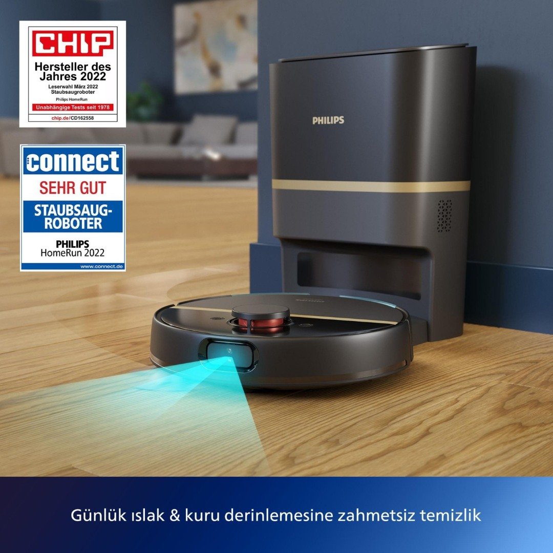 Philips HomeRun 7000 Serisi Aqua XU7100/01 Çöp İstasyonlu Siyah Gold Akıllı Robot Süpürge Özellikleri